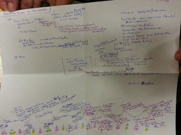 We also agreed that Walter was able to paint distinct pictures of most of the main characters. And there were lots of them in different places and times. One of us, among our visual thinkers, created color-coded charts to help her keep track of people and places.