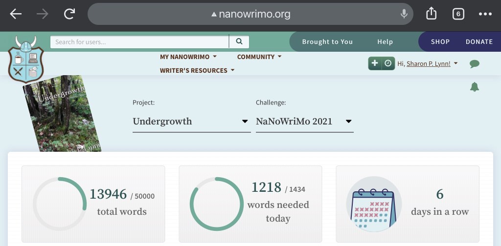 I’ve been able to write every day, and for long stretches on many of them. I passed 51,000 words yesterday. I am so excited. This story has been writing itself. It’s not done yet, but now I feel like I can sit back and relax for the rest of the month. I should be able to get the actual full draft finished by then.