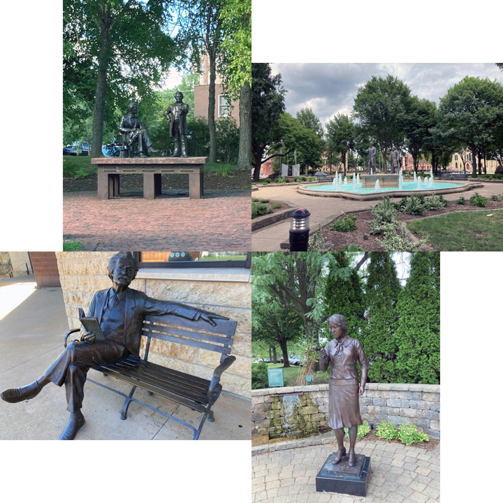 I also spent a day with family in Ottawa, Illinois. I have no idea how many times I’ve driven by Washington Park, glanced at the Lincoln-Douglas fountain and statue, but never stopped. This time, my sister and I parked the car and walked to the memorial of the first Lincoln-Douglas debate. We took pictures, then strolled out of the park to visit another statue.