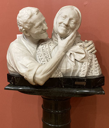 I also liked the late 17th century Samurai helmet and mask, and the flirty statue of peasants, carved in marble by Ferdinand Vichi.