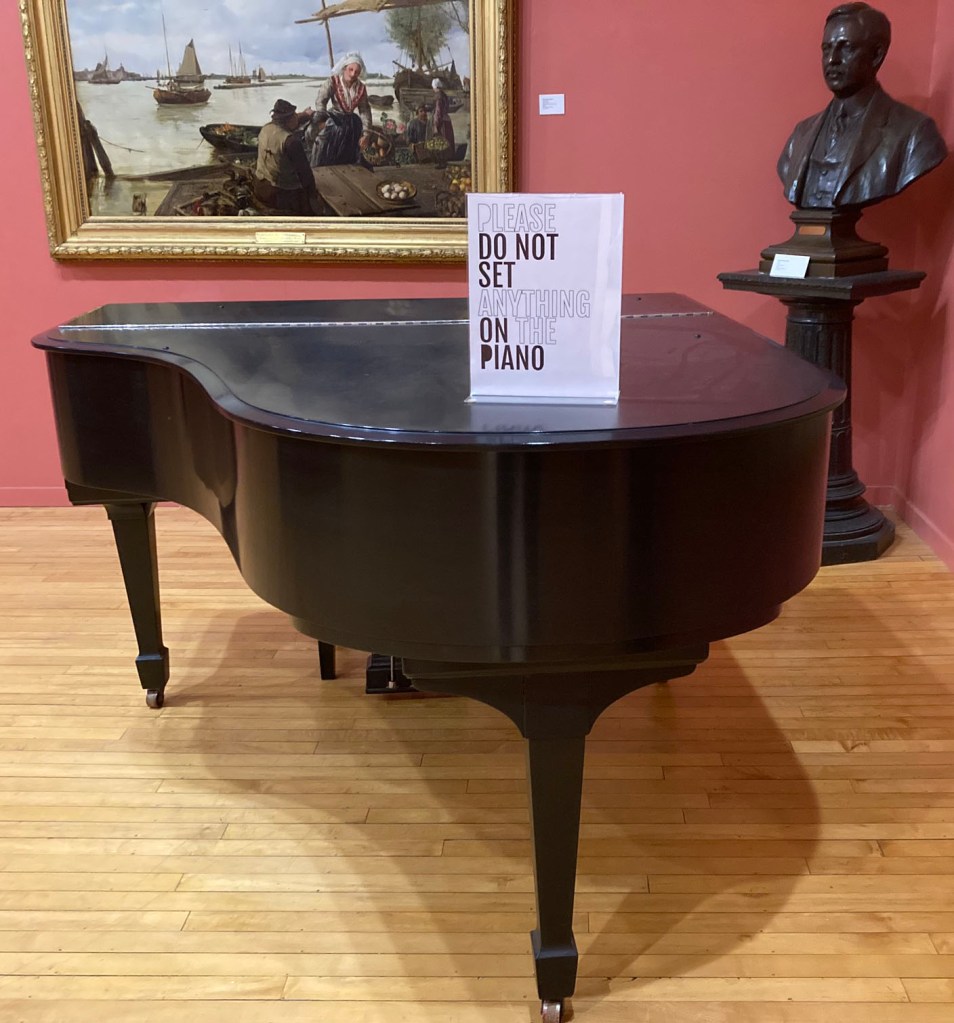 Before we left, we also had a chance to wander through the museum to see some of the other items on display. They are immensly varied. One of my favorites may not be intentional art, but it appeals to my (possibly weird) sense of humor. The “Please Do Not Set Anything on the Piano” sign — set on the piano — strikes my funny bone.