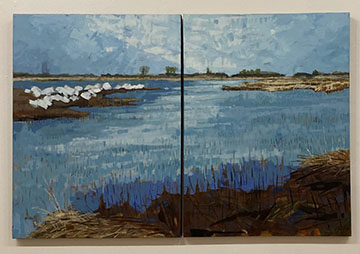 But on a more traditional note, I liked the dyptich — two-panel painting — called Pelican Island by Tara Keating.