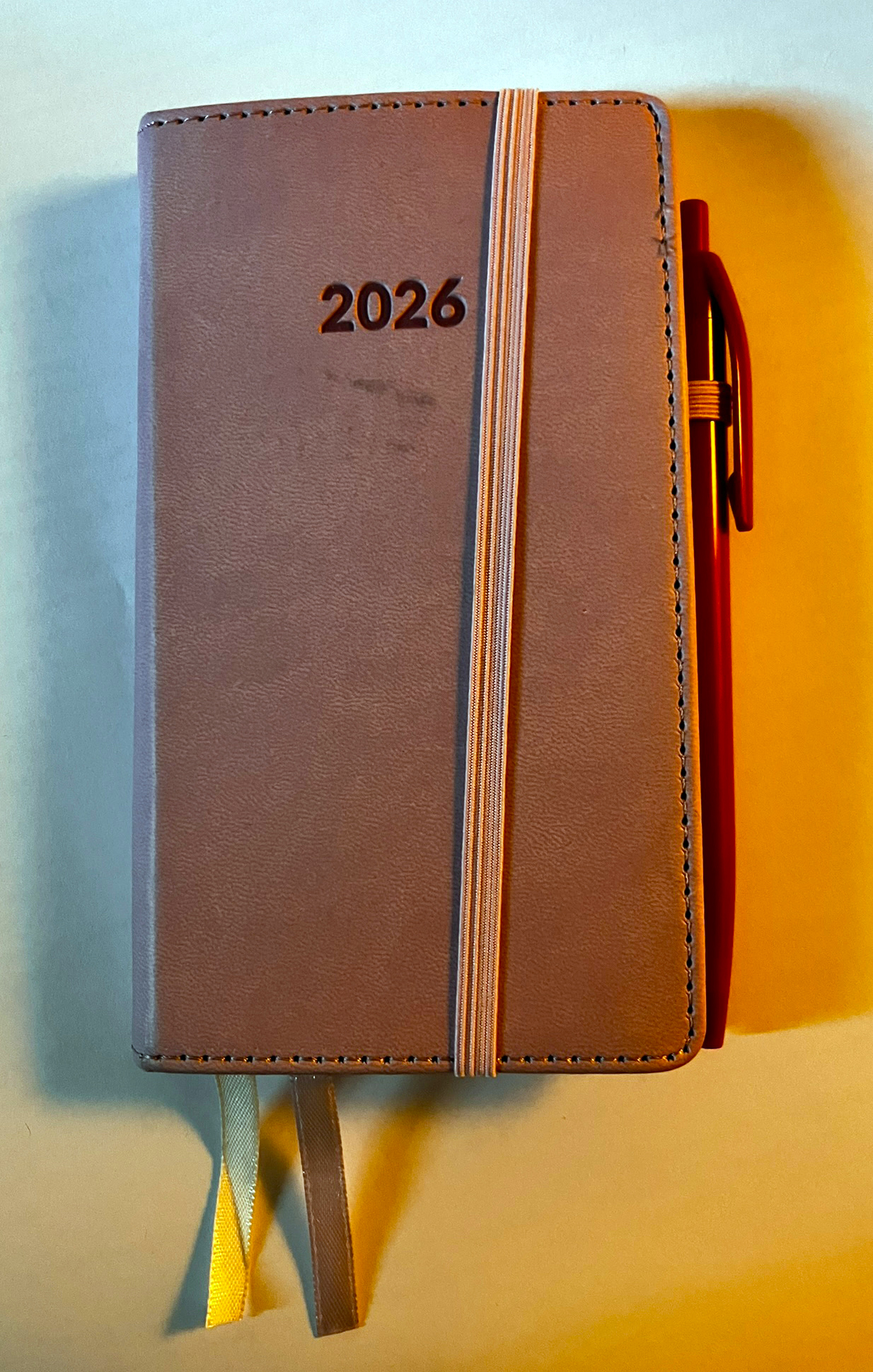 Anyway, I have new calendars on the walls. The main one is next to me in my writing corner. And I have a new pocket calendar that I can drop in whatever bag I’m using when I leave the house. It started out a lovely shade of pink but it’s already showing wear. I may have to consider a darker color next year.