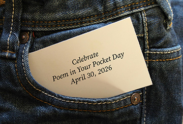 One of the AAP Poetry Month celebrations is Poem in Your Pocket Day, which will be April 30, 2026. It was initiated in New York City schools in 2002. AAP took over the celebration in 2008. There are official rules (check the link above), but you don’t need to follow them if you just want something you can pull out of your pocket anytime. Something to inspire, amuse, or comfort you. Something you can enjoy alone or share with friends.
